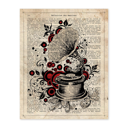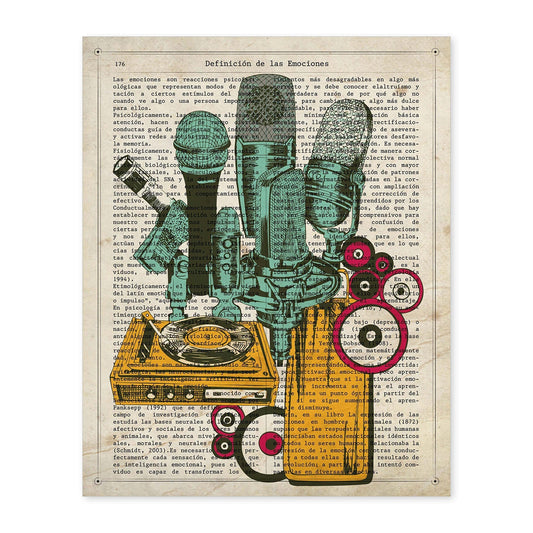 Láminas Vintage de Música y Velocípedo con Definición de Diccionario