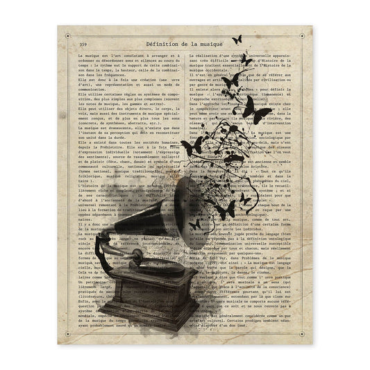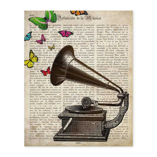 Poster de Gramola con Mariposas y Definiciones Musicales