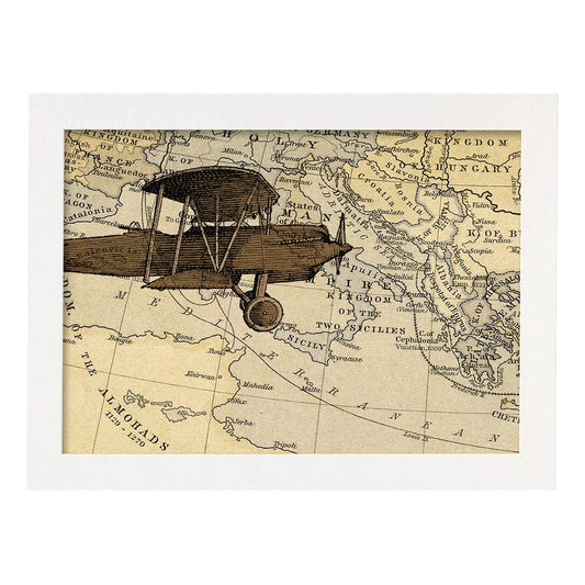 Lámina Vintage de Moto en Francia con Mapas del Mundo