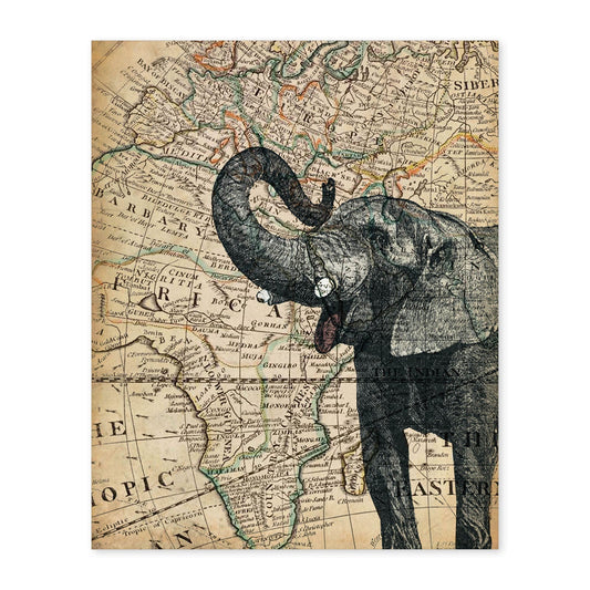 Lámina de Elefante en África con Mapas e Imágenes Vintage