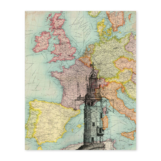 Lámina de Marinero con Catalejo y Mapas Vintage