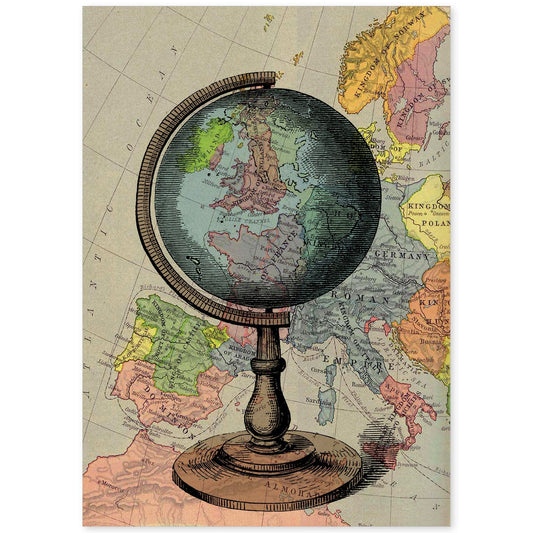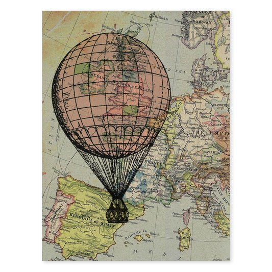 Lámina de Globo Terráqueo en Europa con Imágenes de Globos Aeroestáticos