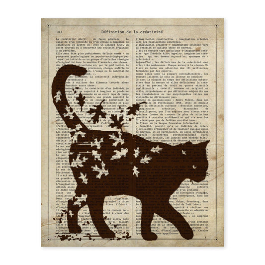 Lámina de Gato con Hojas de Otoño e Ilustraciones de Textos