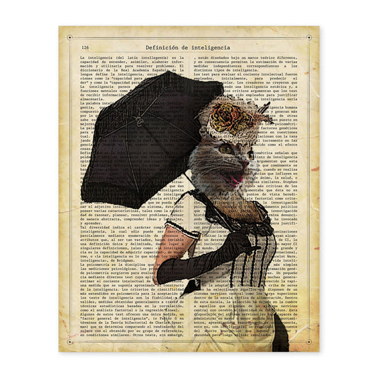 Lámina de Gato con Sombrilla e Ilustraciones de Animales