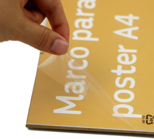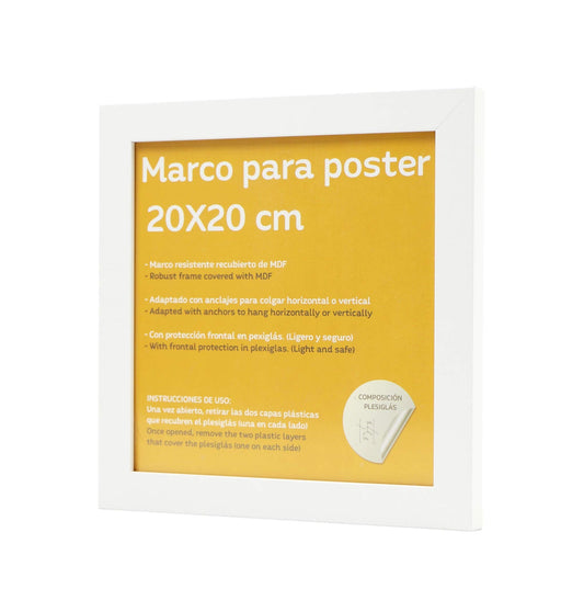 Marco de MDF blanco con frontal de plexiglas para láminas.