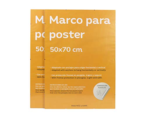 Set 2 Marcos Transparentes de Clip Soportes Transparentes para Fotos, Posters, Diplomas, Dibujos o láminas. Tamaño 50x70cm. Marcos Clip Transparentes con plexiglas y Anclajes para Colgar.