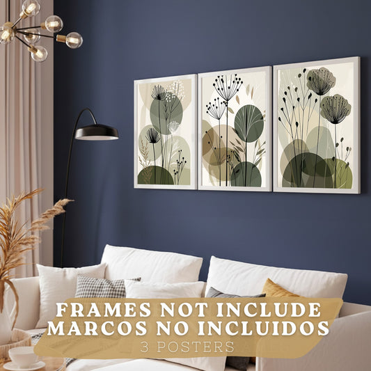 Set de 3 laminas decorativas flores silvestres. Cuadros Salon modernos - Posters decorativos Botanico campestre. Decoración Dormitorios.