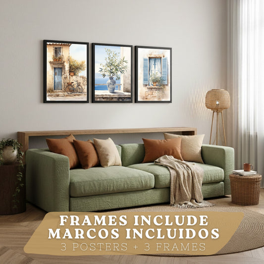 Set de 3 laminas decorativas pared estilo colorido. Cuadros Salon modernos - Posters decorativos azules. Maritimo. Decoración Dormitorios.
