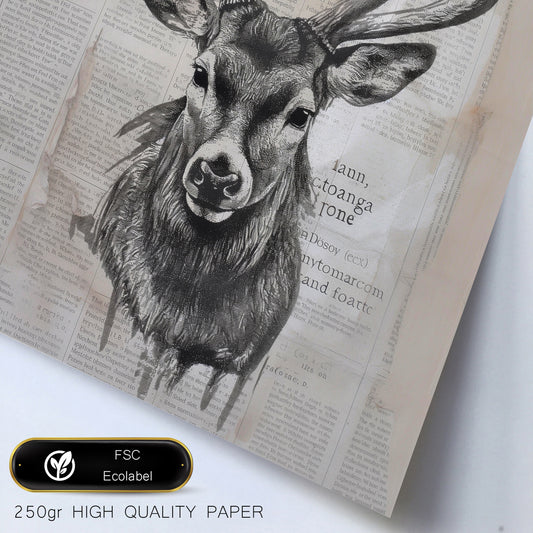 Animales Vintage: mariposa, ciervo, gato, pez, conejo, libélula - Láminas