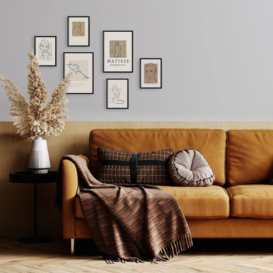 Set de 6 láminas estilo collage abstracto Matisse y Miró en colores vivos para salón moderno o estudio – 2 grandes y 4 medianos