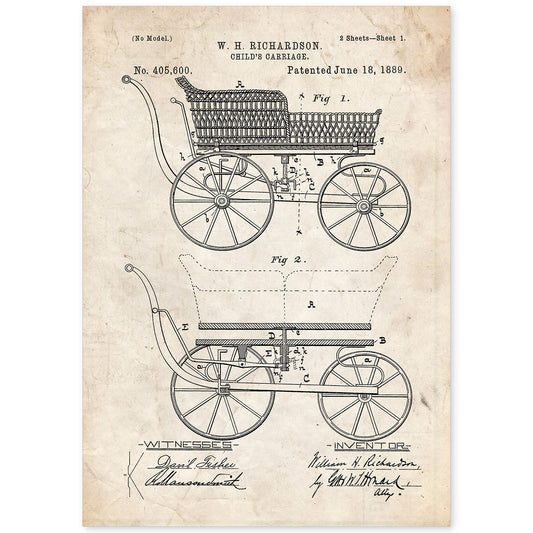 In offertaLámina de Patente de Carrito de Bebé Antiguo