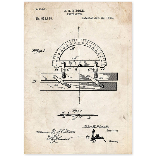 Lámina de Diseño con Patente de Transportador Regla Antigua