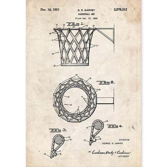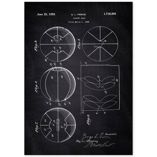 Lámina de Patente de Pelota de Baloncesto Antigua