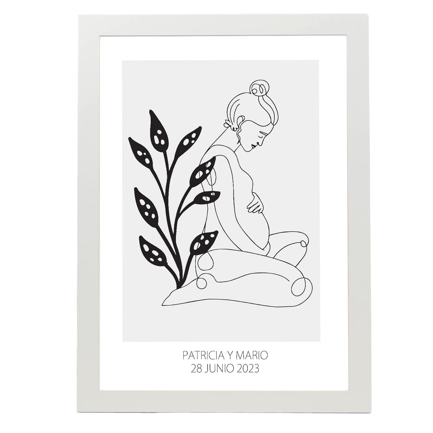 Lámina Personalizada Mujer Embarazada Con Nombres Y Fecha Nacimiento Regalo De Diseño Para Momentos Unicos. Ideal Para Eventos. Cumpleaños, Aniversarios