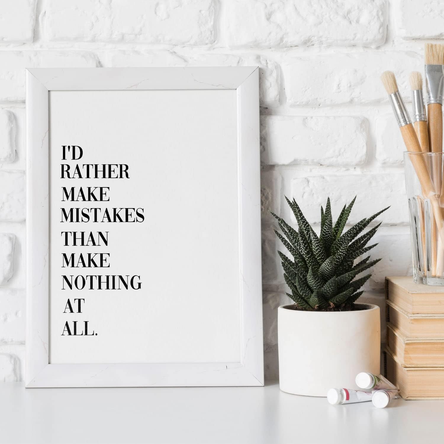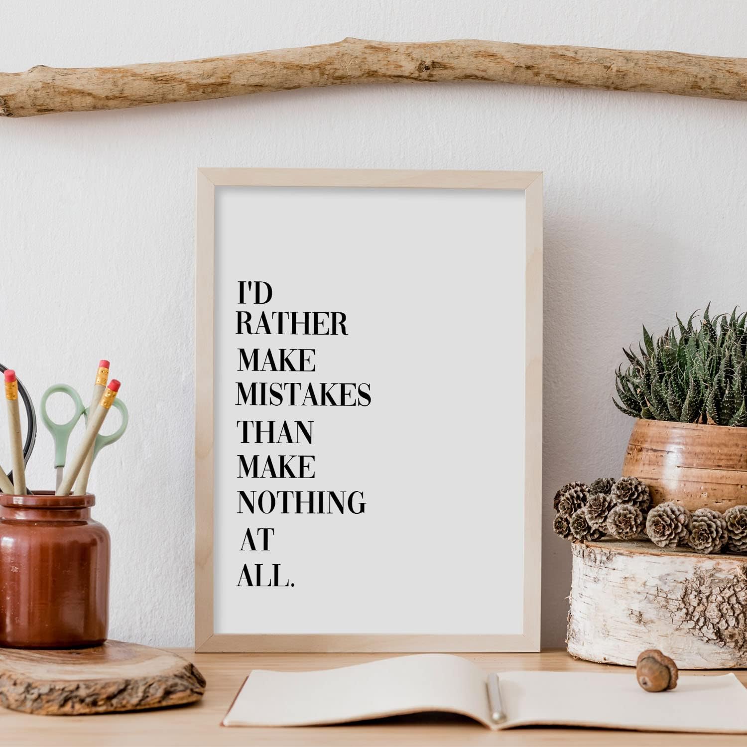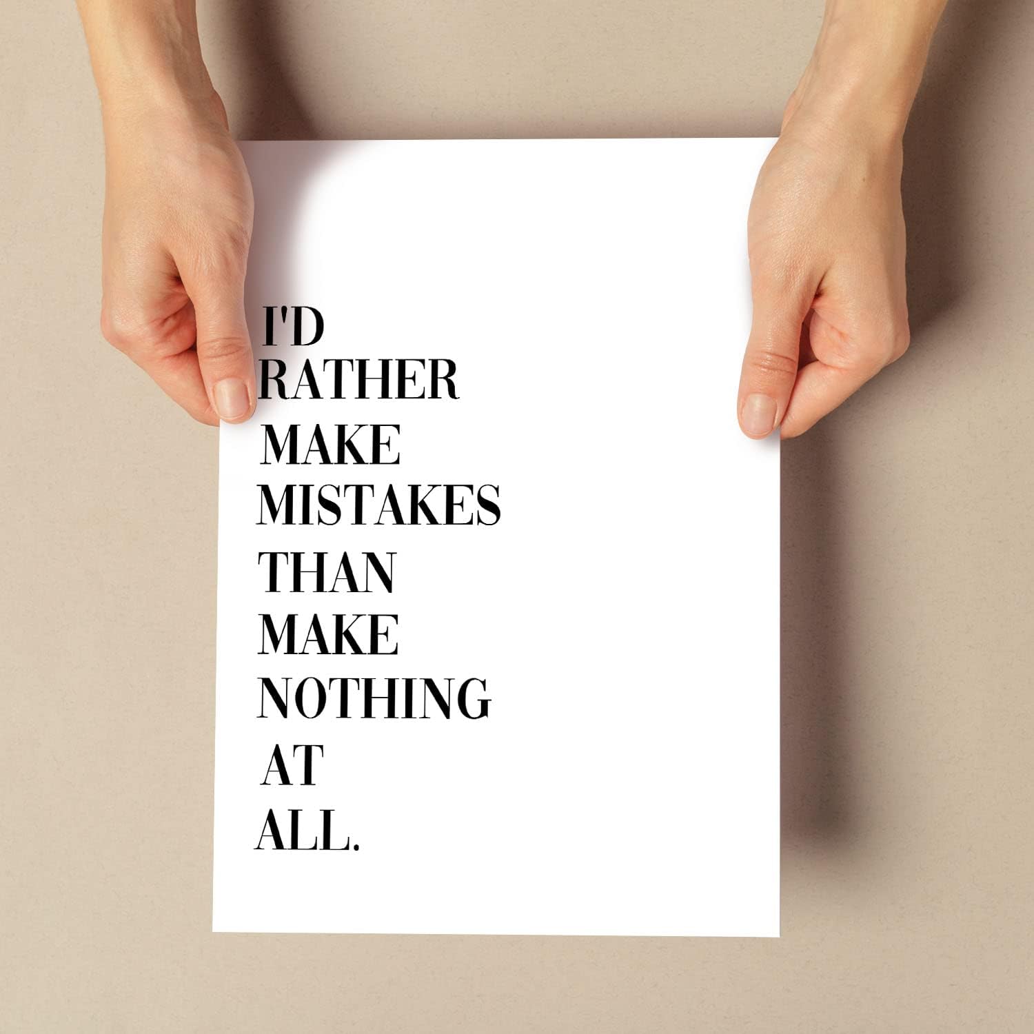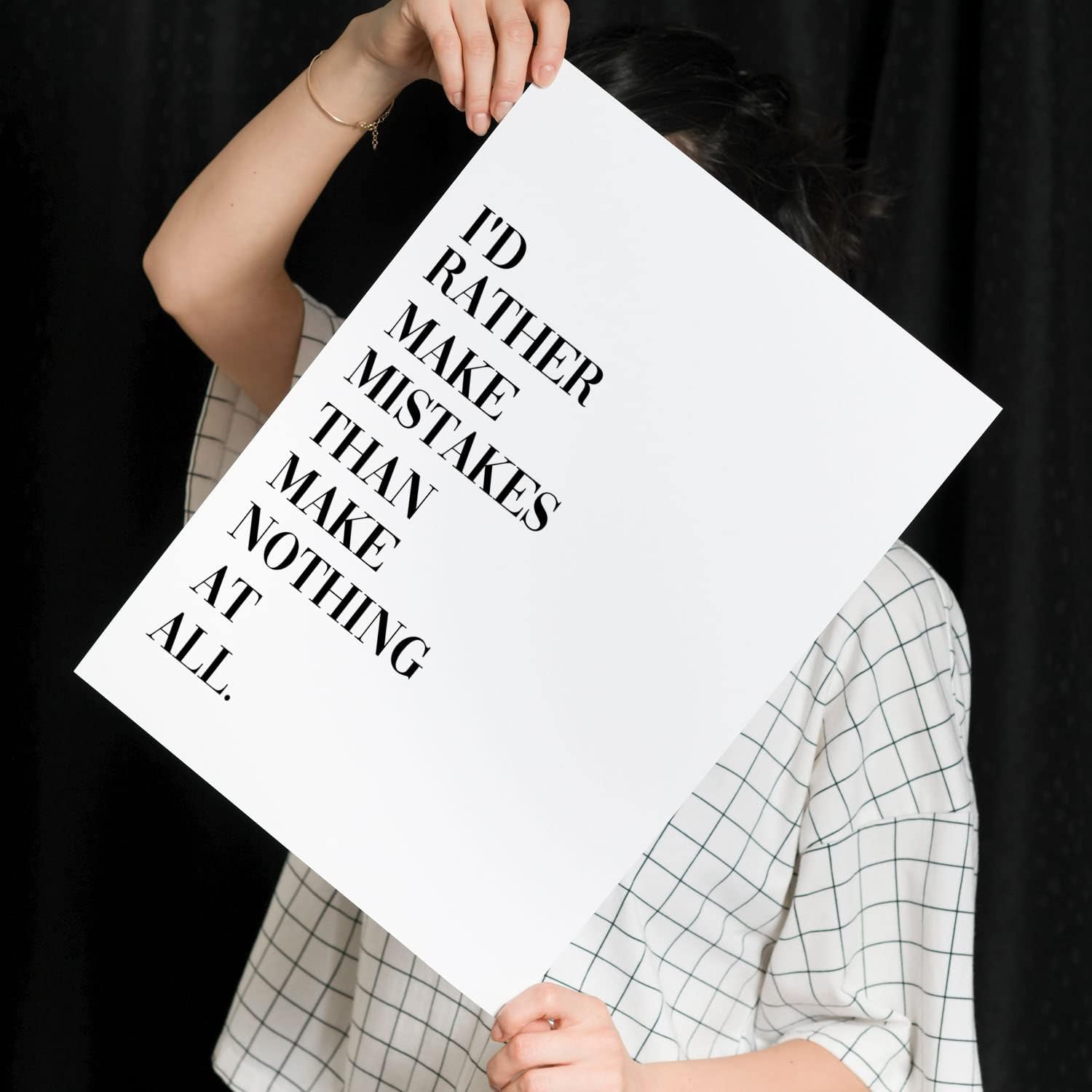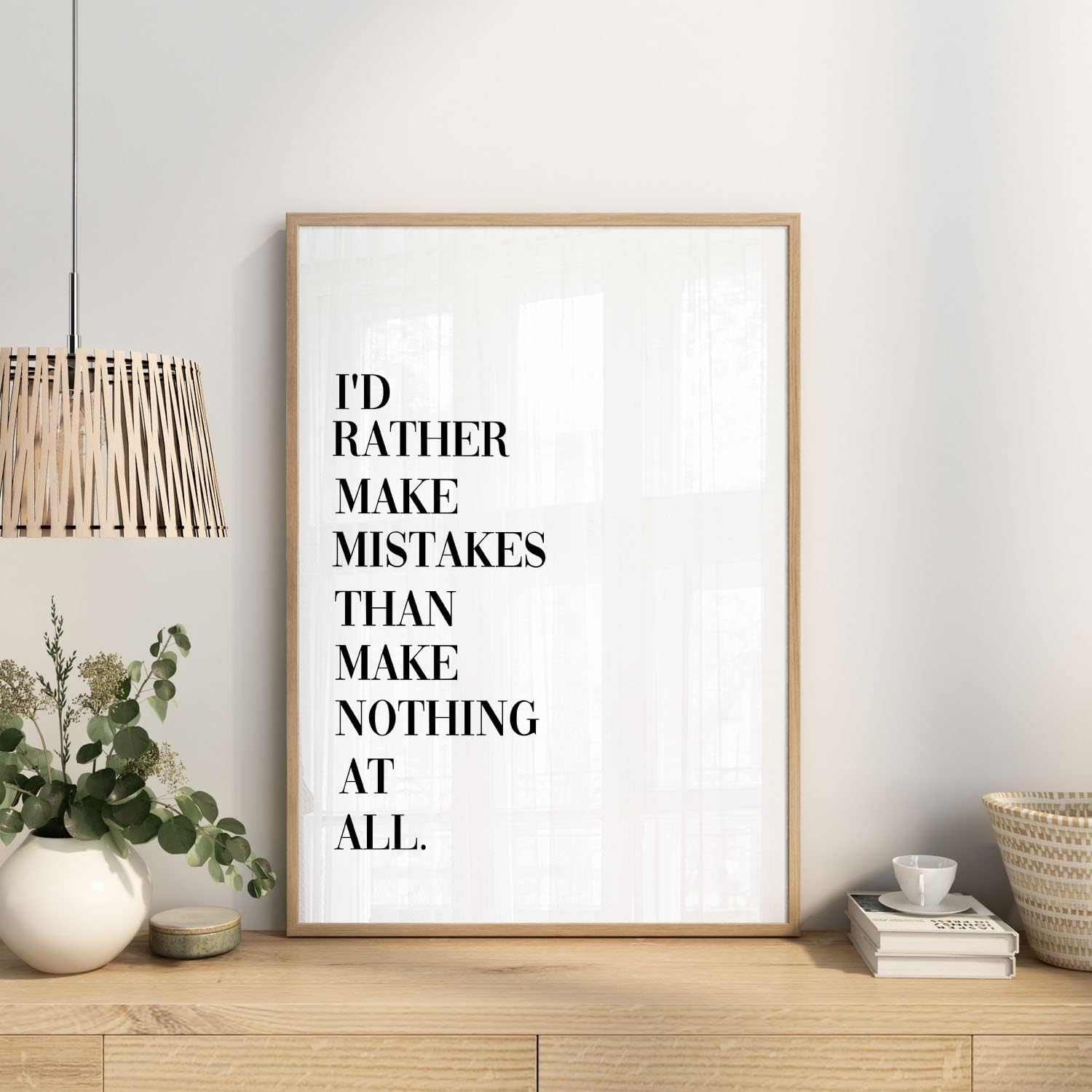 Lamina artistica Decorativa con ilustración de Rather Make Mistakes tamaño A3 Estilo Mensaje inspiracional para Decorar el hogar, salón, Habitaciones, Estudios
