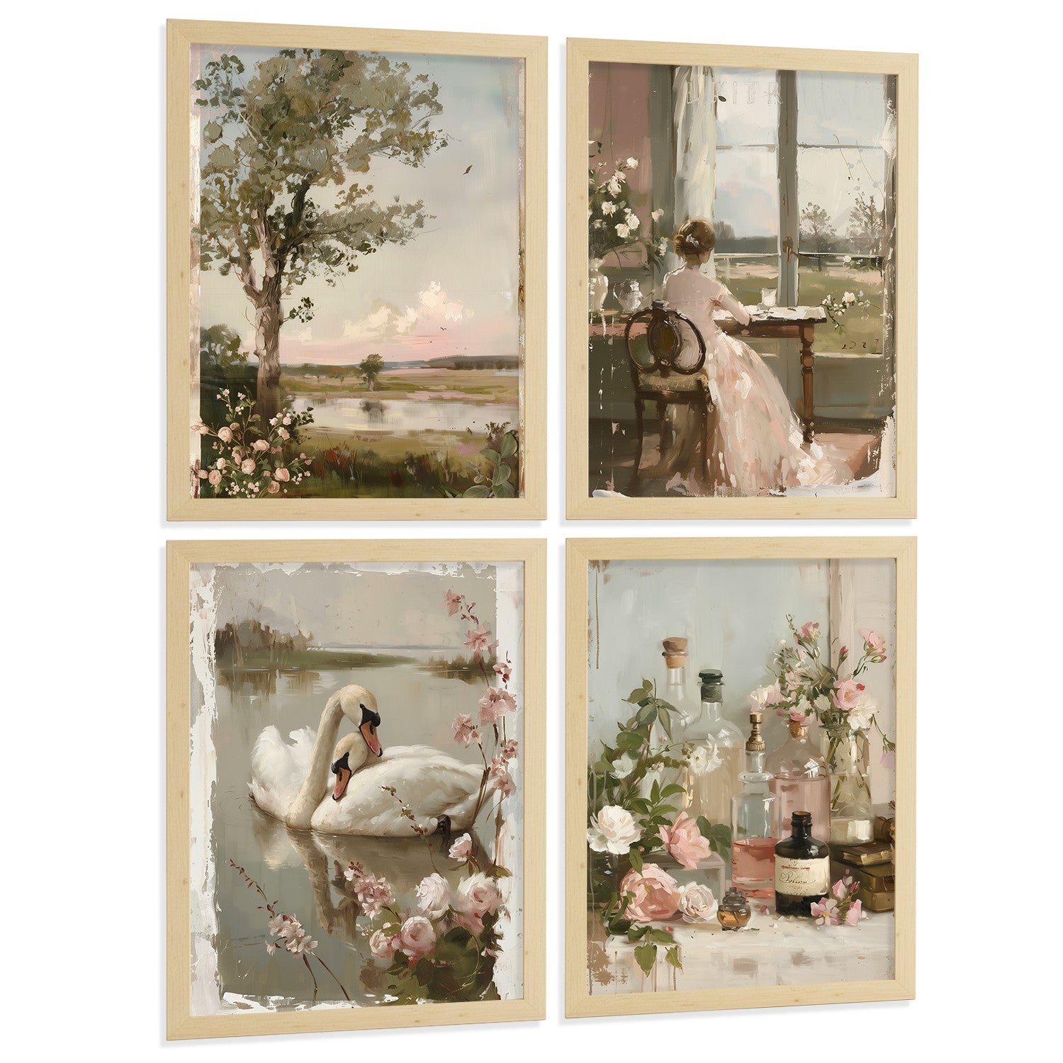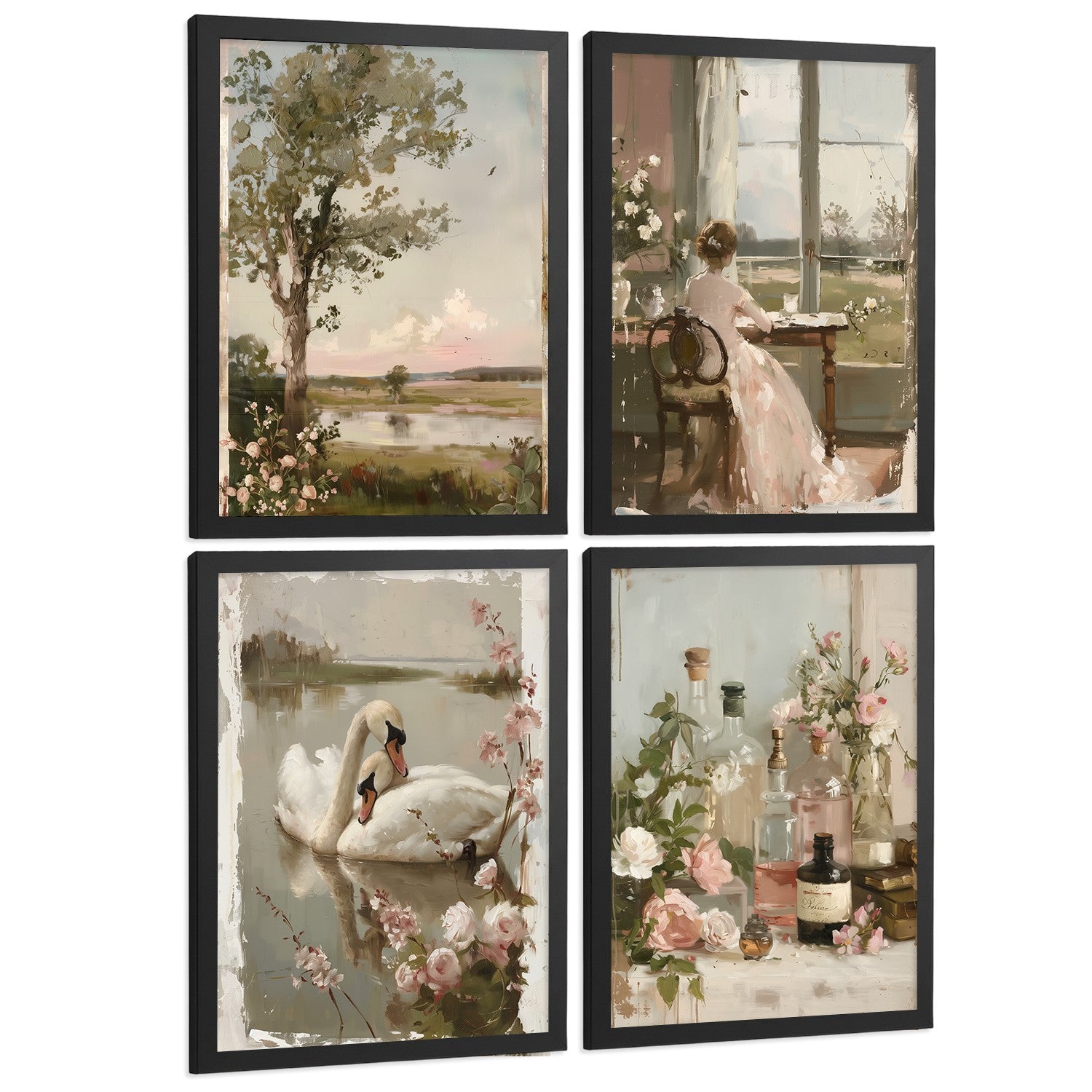 Set de 4 laminas decorativas pared Pintura Oleo Rosas Salon modernos Posters, cuadros decorativos Impresionistas. Matisse Decoración Dormitorios Sala de estar