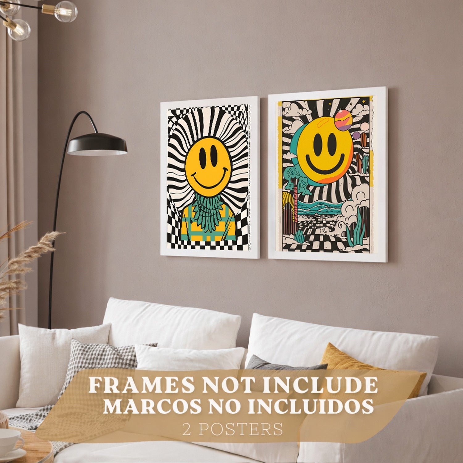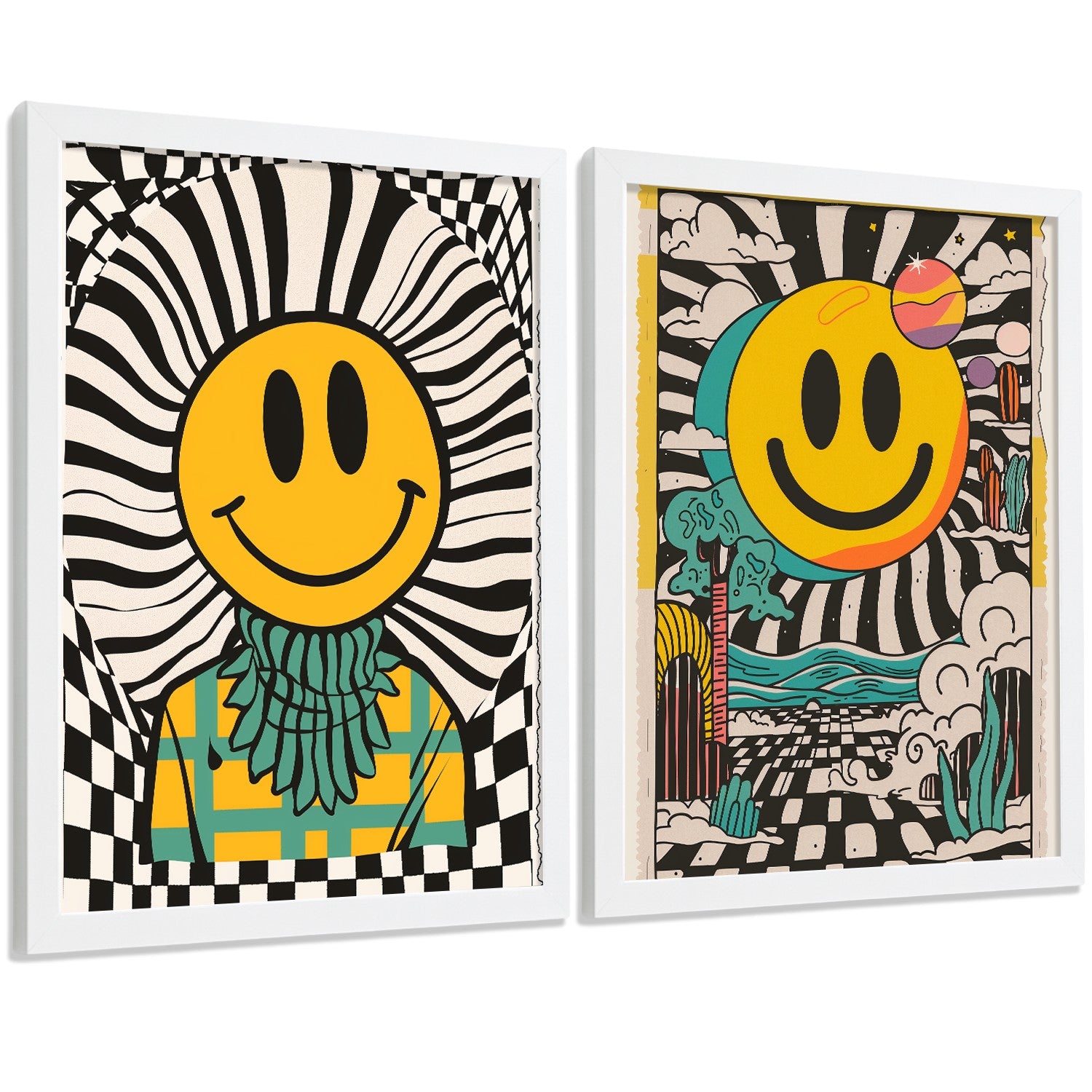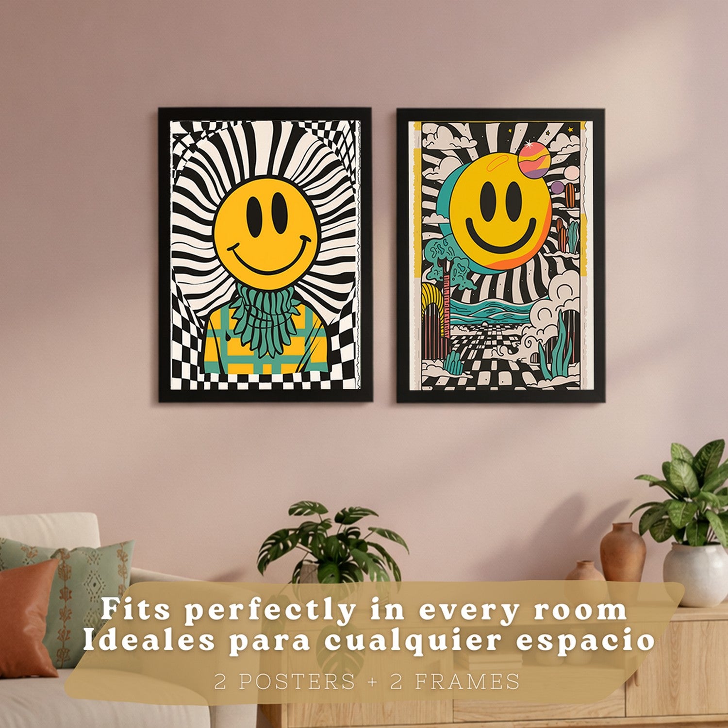 Set de 4 laminas decorativas Smiley Cuadros Salon modernos - Posters decorativos Emoji sonrisa Decoración Dormitorios Cocina Baño
