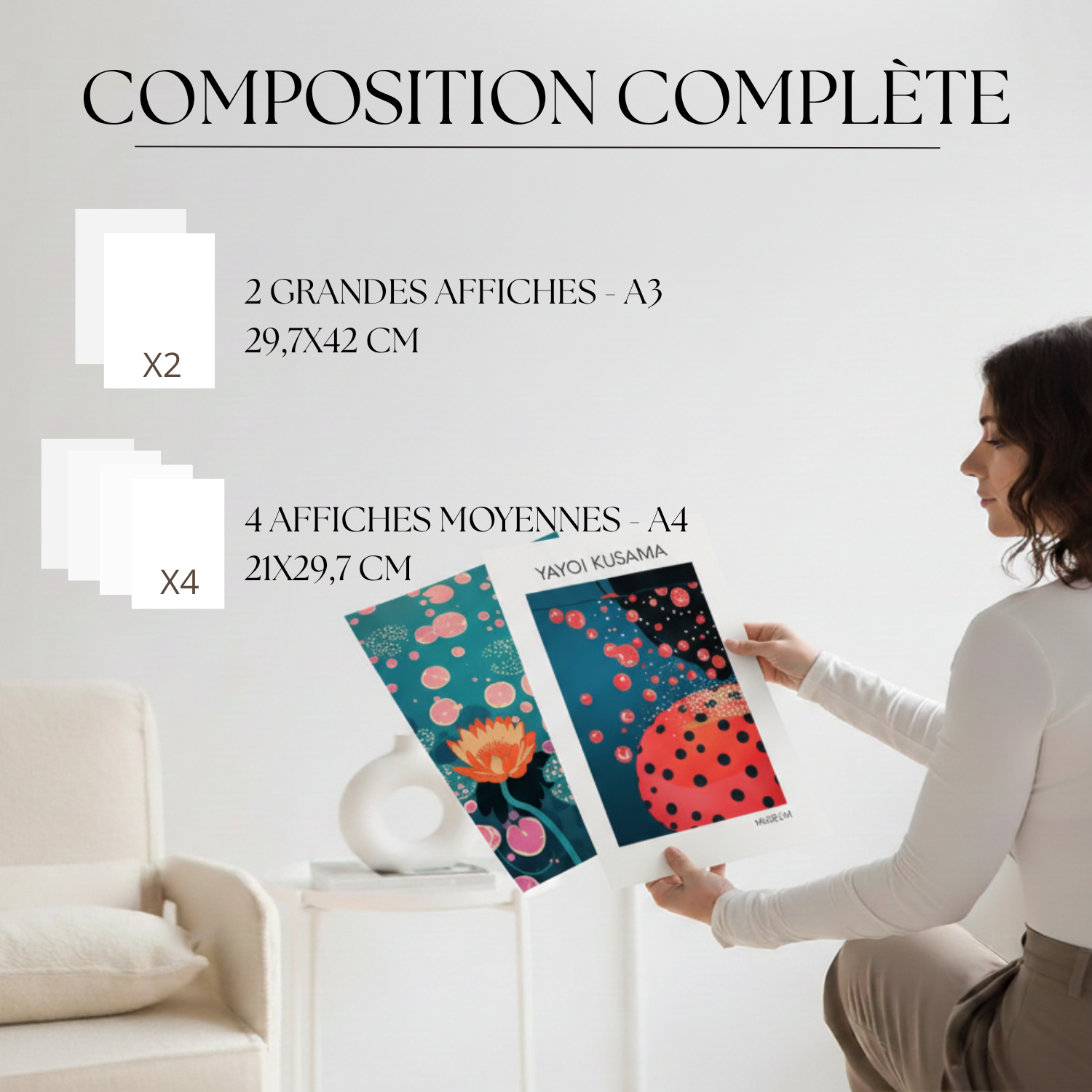 – Disponible con marco negro, blanco, madera natural o solo las láminas.