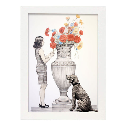 Lámina Nacnic Perro en Jarrón de Flores Ecléctico