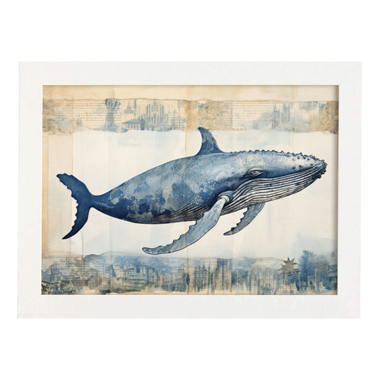 Lámina de Marinero con Catalejo y Mapas Vintage