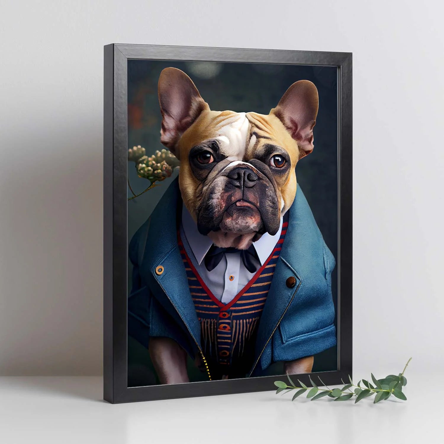 Lámina Nacnic de Bulldog Vestido para Sala de Estar