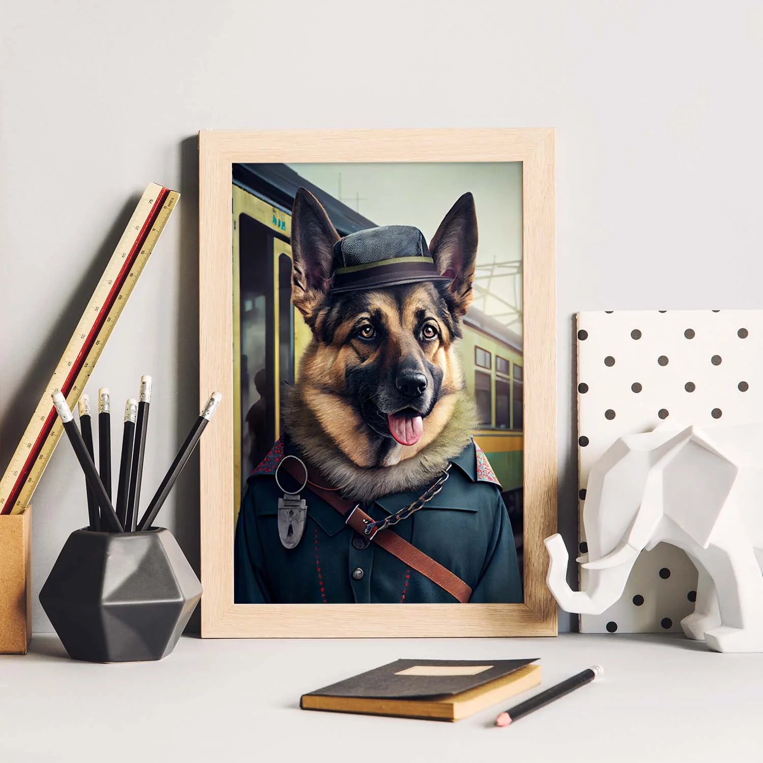 Lámina Nacnic de Pastor Alemán con Ropa Humana en Estilo Fotográfico