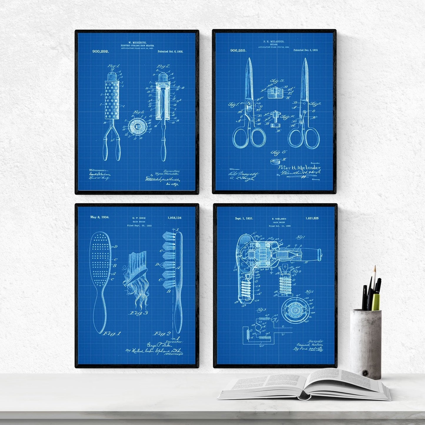 Pack de 4 Láminas Patentes de Peluquería Azul