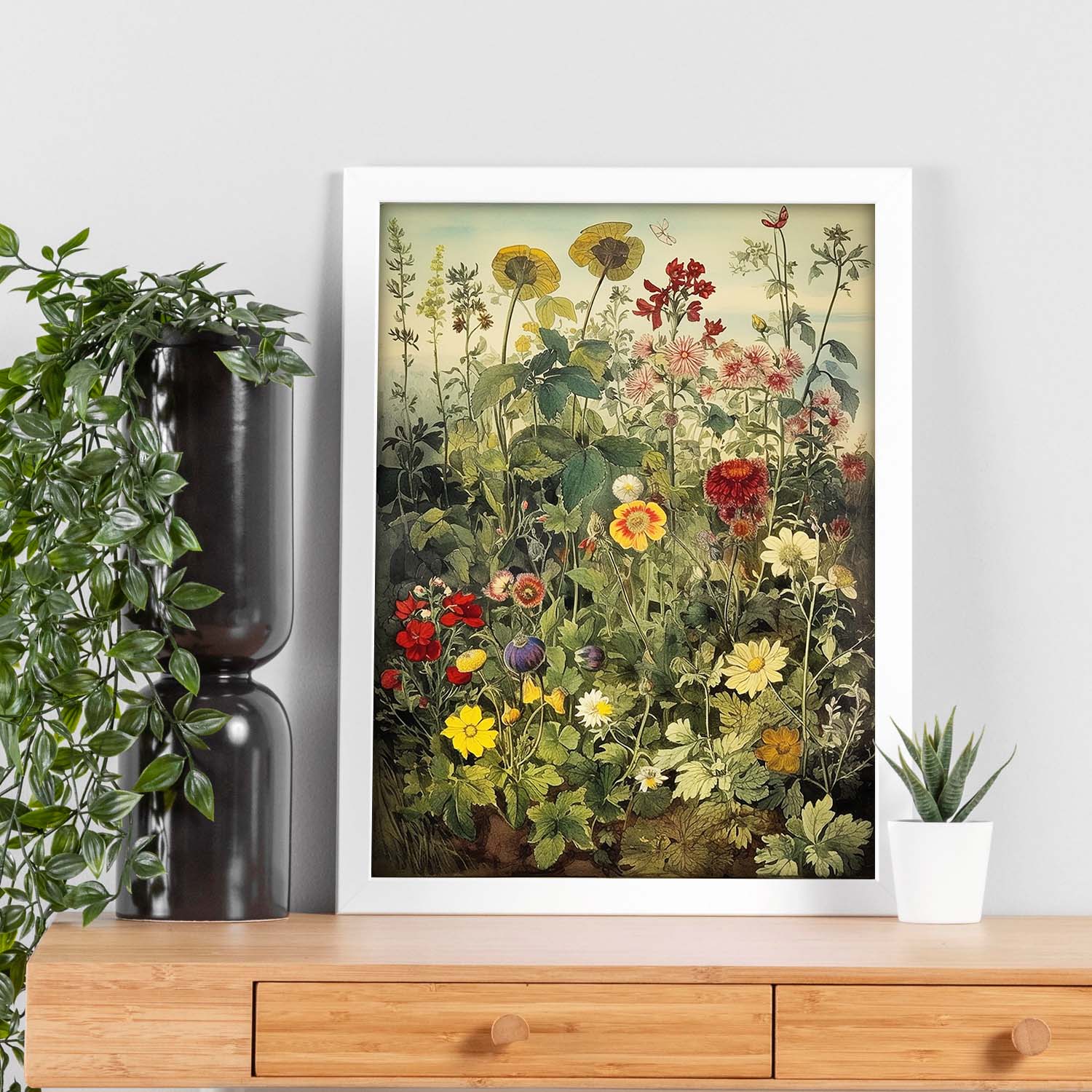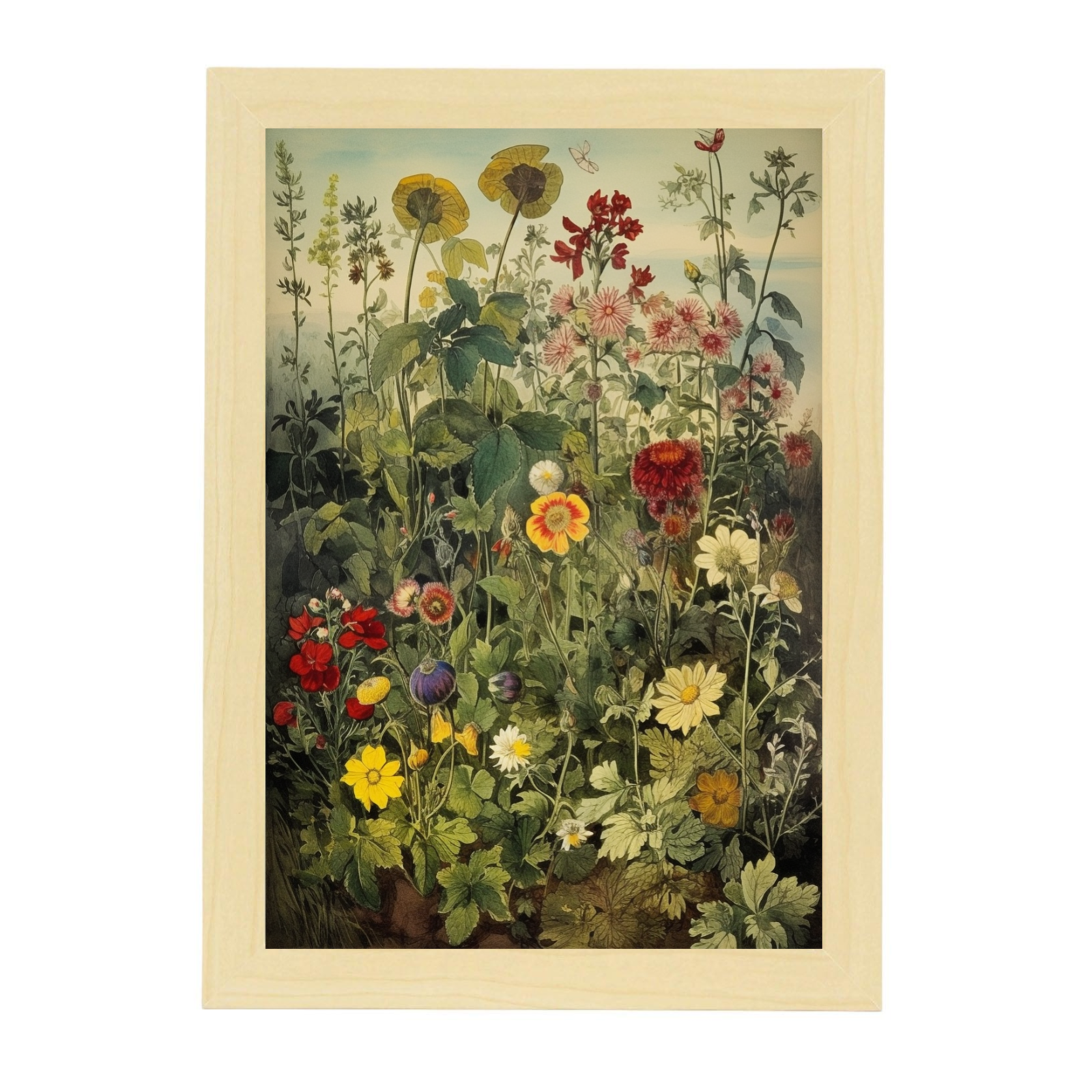 Lámina Cromolitografía Victoriana de Flores y Plantas del Prado