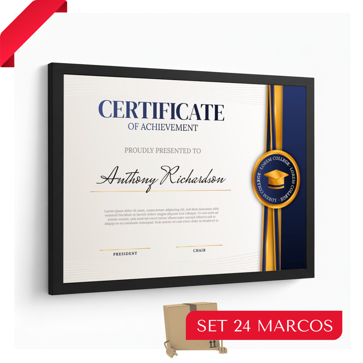 - Set de 24 Marcos para Láminas, Diplomas y Cuadros - Color Negro Estilo Decoración Madera - Pack de 24 Marcos en tamaño A4 ( 21x29.7 cm ) - Ideal para decorar Paredes y Habitaciones con Dibujos, Fotos E Imágenes Al Mejor Precio.